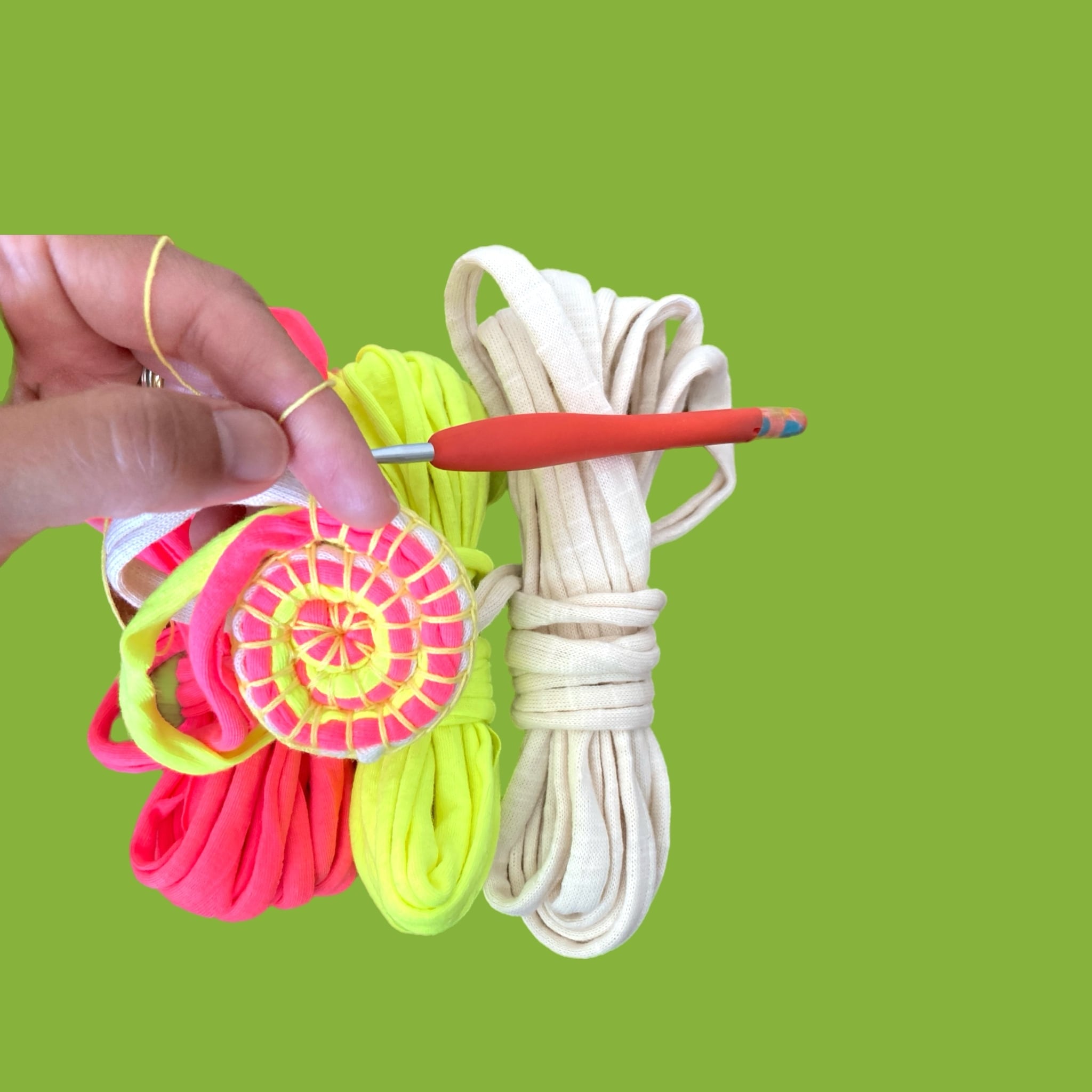 芯になるTシャツヤーンや、編み糸(写真の色番)のご希望がある場合は 備考欄にご記入ください。